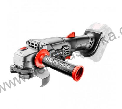 Úhlová bruska GRAPHITE, spolupracující s akumulátory 18V Li-Ion GRAPHITE Energy+. Je přizpůsobena pro práci s kotouči s průměrem 115 mm, dosahuje rychlostí 10000 otáček za minutu. Bruska je vybavena dvojprvkovým tlačítkem zapínače, které zajišťuje bezpečnost a plnou kontrolu nad prací zařízení. Konstrukce elektrického nářadí se vyznačuje vysokou ergonomií - zúžená úchopová část je potažena protiskluzovým materiálem, díky tomu bruska pevně spočívá v ruce. Díky plochému krytu převodu je možné se zařízením pracovat také v obtížně přístupných místech. Zabudované tlačítko blokování vřetene chrání uživatele před náhodným zapnutím blokování během práce. Umístění ventilačních otvorů mimo úchopovou zónu chrání motor před přehřátím. Regulace polohy krytu kotouče se provádí bez použití nářadí.