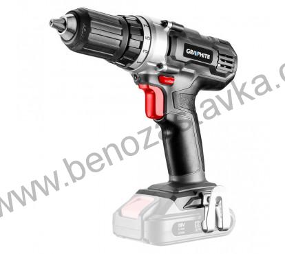 Dvourychlostní akumulátorová vrtačka / šroubovák GRAPHITE, spolupracující s akumulátory 18V Li-Ion GRAPHITE Energy+. Elektrické nářadí má plynulou regulaci otáček a je vybaveno přepínačem směru otáčení. Samoupínací sklíčidlo umožňuje použití příslušenství s průměrem 2-13 mm. Maximální otáčky vřetene při prvním rychlostním stupni činí 350, při druhém 1250 otáček za minutu. Maximální točivý moment činí 35 Nm (měkké zavrtávání) / 55 Nm (tvrdé) a může být regulován 19stupňovou spojkou s dodatečnou možností vrtání. Zařízení je vybaveno elektrickou brzdou motoru a automatickým zajištěním vřetene. Automaticky spouštěná dioda LED osvětluje pracoviště. Ergonomicky tvarovaná rukojeť a kompaktní konstrukce vrtačky / šroubováku umožňují pohodlnou práci i v obtížných podmínkách. Rukojeť je potažena protiskluzovým materiálem, díky tomu elektrické nářadí pevně spočívá v dlaní. Planetová převodovka je vyrobena z vysoce kvalitní oceli.